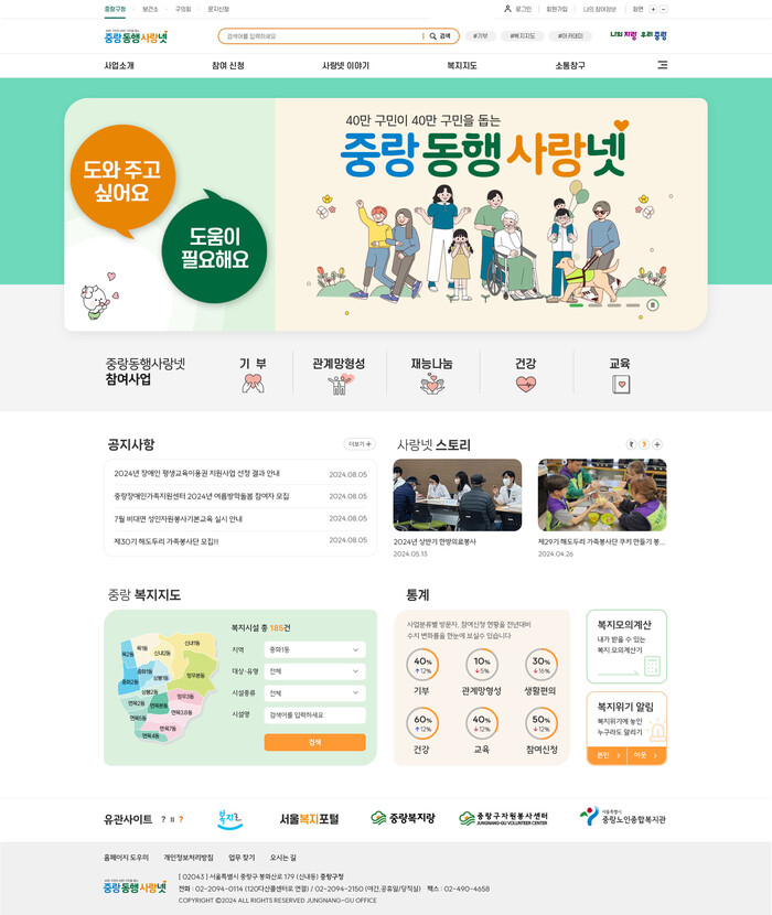 공공 및 민간의 복지 정보를 한 번에 조회할 수 있고, 자원봉사센터 및 중랑구사회복지협의회와도 연동돼 기부 및 봉사활동에 쉽게 접근할 수 있다.