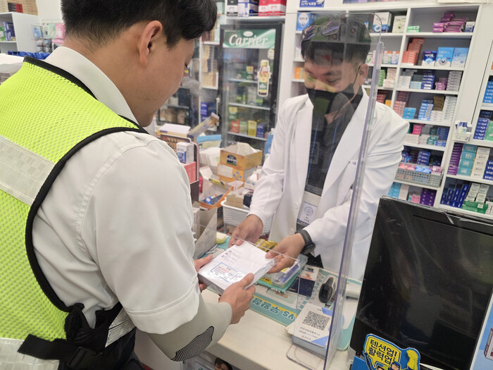 | ▲ 무안경찰서(서장 정성일)는 8일(월) 지역 약국과 협업해 교통기초질서 확립을 위한 이색적인 홍보 활동을 펼치고 있다.(사진=무안경찰서) |