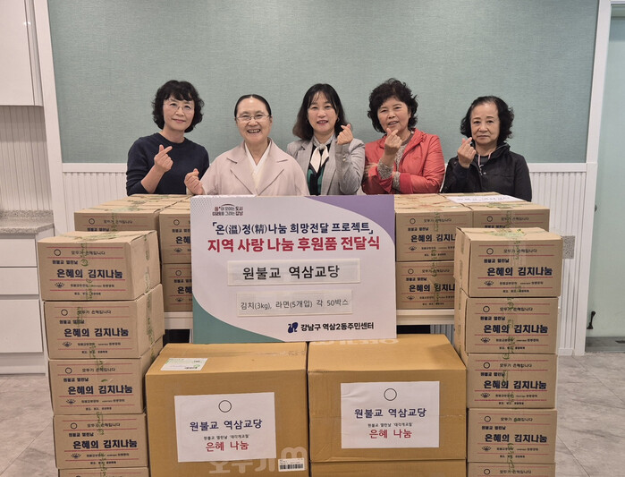 역삼교당은 나눔의 정신을 실현하고자 김치와 라면 등 후원품을 제공했으며, 주민센터 직원들이 각 가정을 방문해 가구당 김치 3㎏ 1박스와 라면 5개들이 1봉지씩을 전달하며 안부 확인을 실시했다.