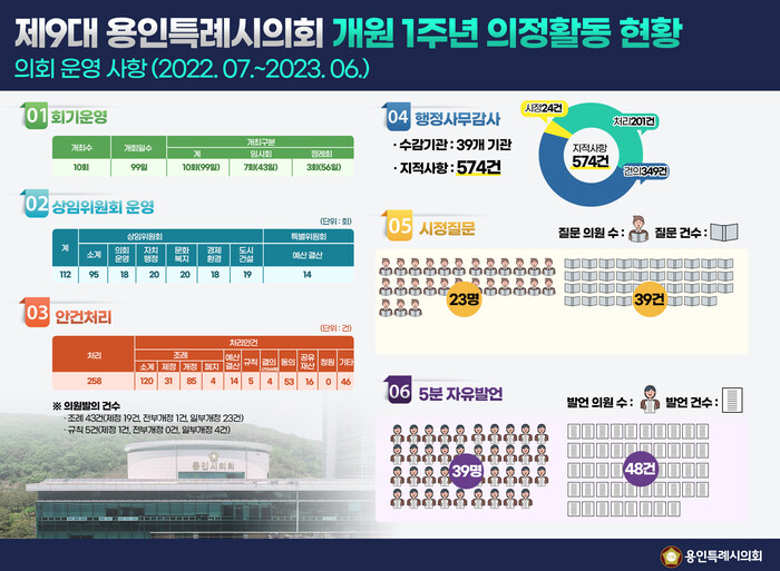 | ▲ 제9대 용인특례시의회 개원 1주년 의정활동 현황 |