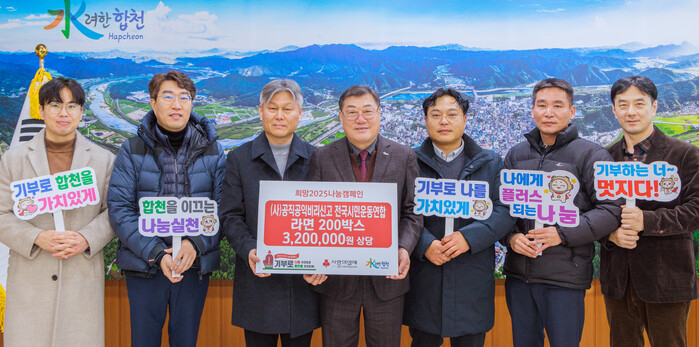 김윤철 합천군수는 “지역사회의 이웃에게 나눔을 실천해 주셔서 감사드리며, 따뜻한 손길이 필요한 이웃에게 소중히 전달하겠다.”고 감사의 마음을 전했다.