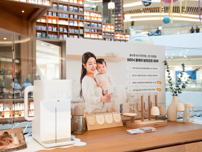 특히 별마당도서관이 내려다보이는 곳에 마련된 ‘감성 맘마존’에 전시된 5세대 올케어 분유포트 ‘iEK01’은 출수형·주전자형 결합, 고인물 자동 배수 시스템, 1ml 단위 정량 출수, 애플리케이션 연동 등의 기술력으로 방문객들의 이목을 사로잡았다.