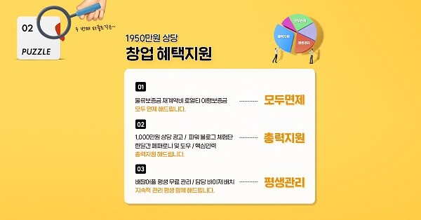 이번 프로모션을 통해 신규가맹점에 대한 물류보증금, 재계약비, 로열티, 이행보증금을 100% 면제하여 최대 1000만 상당의 보증금 면제혜택을 진행한다.