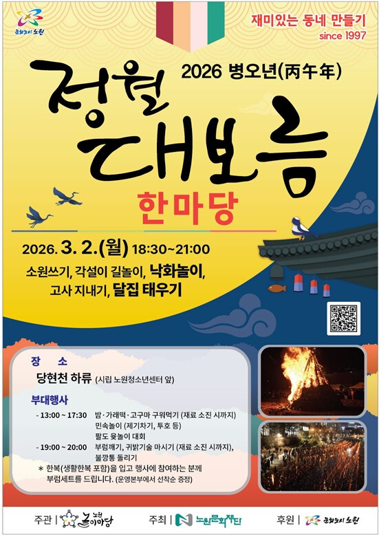 [시민일보 = 박소진 기자] 노원구(구청장 오승록)가 오는 3월2일 당현천 하류 일대에서 '2026 병오년 정월대보름 한마당' 행사를 개최한다.