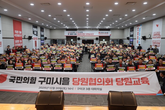 [구미=박병상 기자] 국민의힘 구미시(을) 당원협의회(위원장 강명구 국회의원)는 20일 오후 2시, 구미시 산동읍 구미코 3층 대회의실에서 약 2,000여 명의 당원이 참석한 가운데 ‘국민의힘 구미시(을) 당원교육’을 성황리에 개최했다.