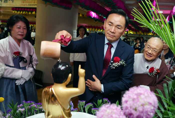 | ▲ 능인선원에서 열린 욕불식에 참석한 조성명 강남구청장 (사진=강남구청 제공) |