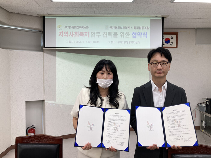 [인천=문찬식 기자] 인천 부평구(구청장 차준택) 부개1동은 지난 8일 인천평화의료복지 사회적협동조합과 지역사회 복지 향상 및 건강한 공동체 조성을 위한 업무 협약을 체결했다.