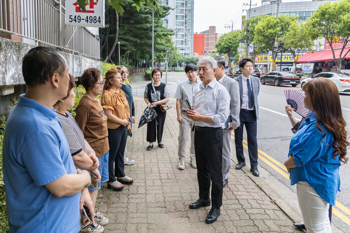 이날 윤 구청장은 공원 이용 불편, 횡단보도 위치 조정, 학교 앞 그늘막 설치, 자전거 거치대 확충 등 다양한 민원 현장을 찾아, 직접 주민들과 만나 소통하며 시설 상태와 이용 편의를 꼼꼼하게 살폈다.