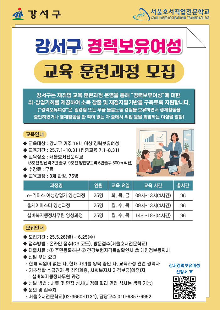 접수 기간은 오는 25일까지며, 서울호서직업전문학교를 직접 방문하거나 QR코드를 통한 온라인 접수도 가능하다.