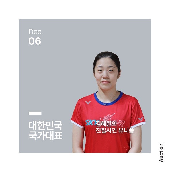 김혜린 선수가 기부한 애장품은 베리스토어 애플리케이션 내의 럭키박스 또는 상단 배너에서 경매로 만나볼 수 있다.