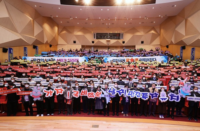 [강진=정찬남 기자] 전남 강진군이 2일 강진아트홀 대공연장에서 2023년 시무식을 대신해 국비 확보와 민간 투자유치 달성을 위한 ‘2023년 군민다짐대회’를 개최하며 새해 군정 발전에 대한 결의를 다졌다.
