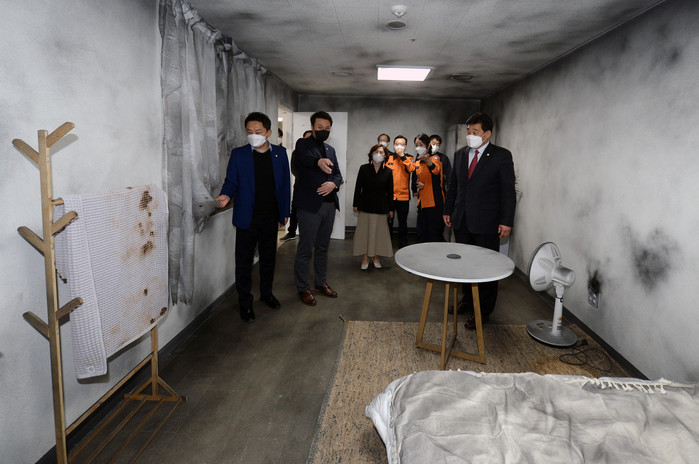 경기 오산시의회가 오는 4월 정식 개관을 앞둔 부지면적 1만6745㎡, 연면적 7094㎡ 규모(지하 1층~지상 1층 1개동) 9개 체험존과 52개 체험종목을 갖춘 ‘경기도 국민안전체험관’을 방문, 관련 시설을 둘러봤다. 사진은 시설을 둘러보고 있는 의원들의 모습. (사진제공=오산시의회)