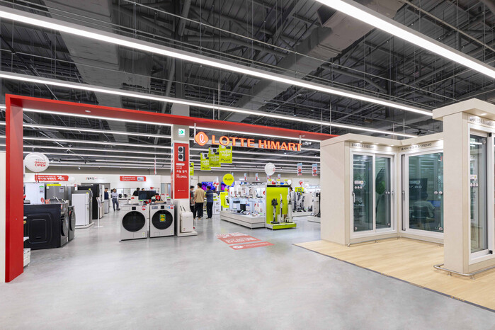 | ▲ kcc글라스 홈씨씨 수원점에 입점한 롯데하이마트 매장 전경. (사진=KCC글라스 제공) |
