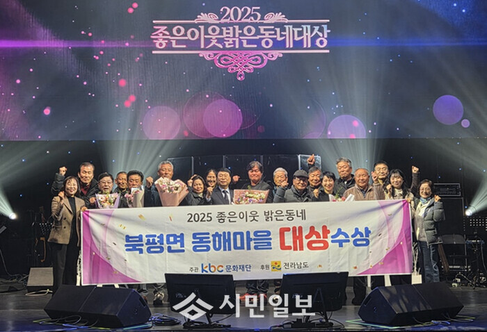 [해남=정찬남 기자] 전남 해남군 북평면 동해마을(대표 모용기)이 주민 화합과 공동체 중심의 지속 가능한 마을 발전에 기여한 공로를 인정받아 kbc광주방송이 주관한 2025년‘좋은이웃 밝은동네’대상을 수상했다.