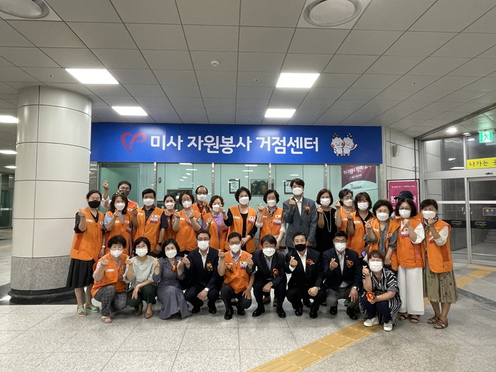경기 (재)하남자원봉사센터는 최근 미사역사내 미사 자원봉사거점센터 개소식을 했다. 미사 자원봉사거점센터에서는 평일 오전 10시~오후 6시 자원봉사 활동가들이 상주하며 1365 회원가입 및 활동연계, 자원봉사활동 상담 등 다양한 자원봉사 서비스를 제공할 예정이다. 사진은 개소식에서 관계자들이 기념촬영을 하고 있는 모습. (사진제공=하남시청)
