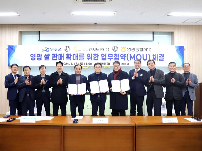 [영광=장수영 기자] 전남 영광군이 최근 영광 쌀 판매 확대를 위해 엔시트론(주), 영광통합RPC(영광군농협쌀조합공동사업법인)와 3자 간 업무협약(MOU)을 체결하고 첫 판매물량 1100포(10㎏ㆍ2640만원)를 출하했다고 밝혔다.