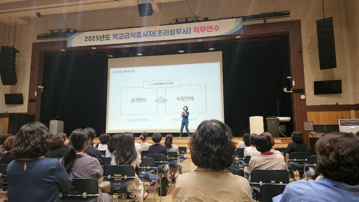 이번 연수는 여름방학을 활용해 급식 위생과 안전 관리, 청렴 의식 함양, 개인 건강 관리 등 실무 역량을 강화하고, 2학기 학교급식 운영을 준비하기 위해 마련했다.