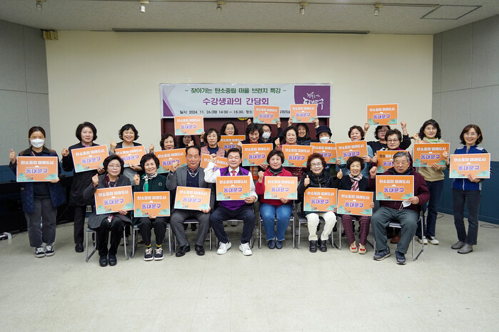 [시민일보 = 이대우 기자] 동대문구(구청장 이필형)가 최근 구청 지하 1층 회의실에서 ‘찾아가는 탄소중립 마을 브런치 특강’ 수강생들을 대상으로 간담회를 열었다.
