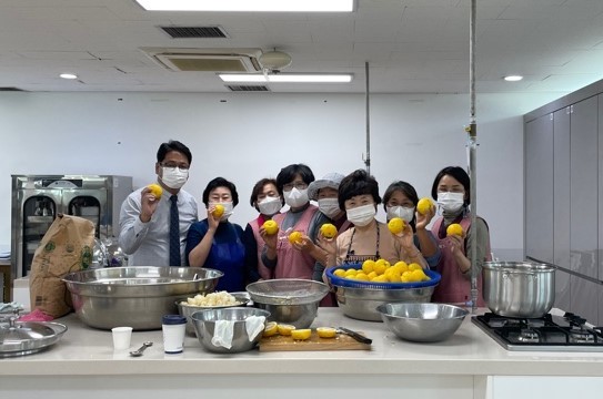 경기 남양주시 양정동 생활개선회는 최근 수제 유자청 60단지를 만들어 지역내 경로당과 어려운 이웃들에게 순차적으로 전달했다. 사진은 이날 생활개선회 회원들이 기념촬영을 하는 모습. (사진제공=남양주시청)
