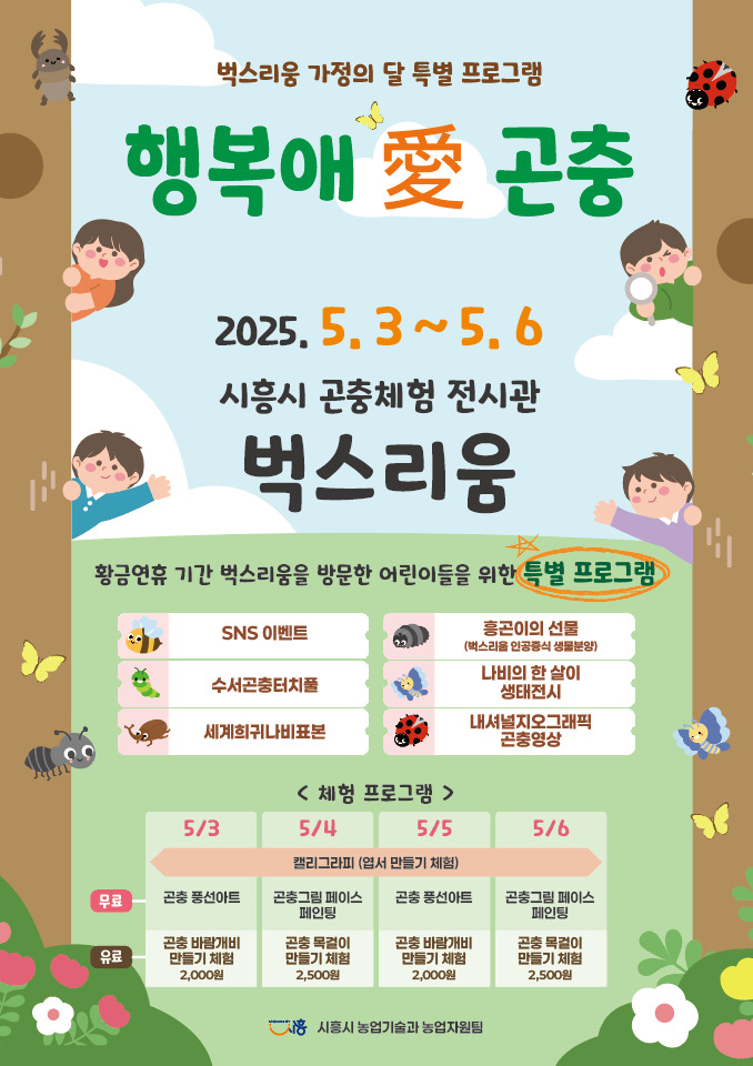 [시흥=송윤근 기자] 경기 시흥시 곤충체험 전시관인 ‘벅스리움’이 어린이날을 맞아 ‘행복애(愛) 곤충’ 특별한 이벤트를 준비했다.