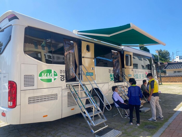 경남 닥터버스는 도내 보건의료서비스 불균형 해소를 위해 이달부터 6월까지 안과, 이비인후과, 비뇨의학과 과목이 없거나 의료접근성이 낮은 14개 지역에 1회 50명 정도 월 3~4회 무료 검진서비스를 제공한다.
