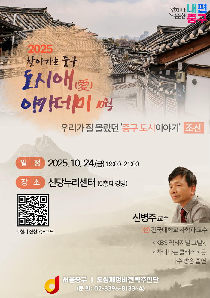 구 관계자는 “도시애(愛) 아카데미는 중구를 보다 깊이 이해하고 애정을 느낄 수 있는 소통의 장”이라며 “이번 강연을 통해 중구의 역사와 문화를 새롭게 발견하고 우리가 살고 있는 도시의 매력을 다시 한번 느껴보길 바란다”고 전했다.