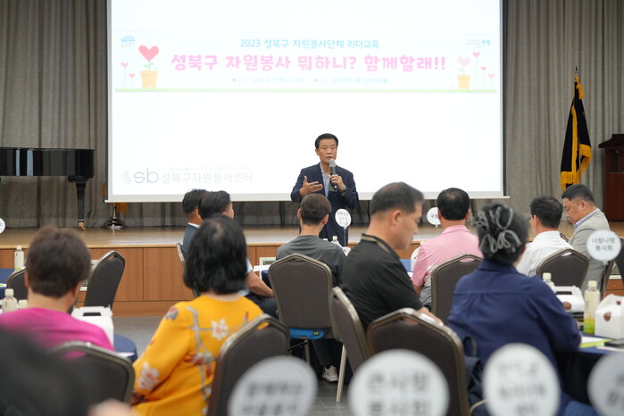 이번 교육은 자원봉사단체와 자원봉사센터 간 상호협력을 통해 성북구 자원봉사 활성화를 위해 마련한 자리로, ▲자원봉사단체 소개 ▲2023년 경과보고 ▲활동지원 안내 ▲리더교육 순으로 진행했다.