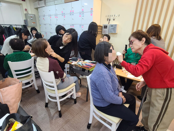 시니어학교 강동천호 주간보호센터에서 진행된 이번 봉사는 수료생들이 지난 10주간 배웠던 메이크업 기법을 실전에 이용하는 동시에 관내 어르신들에게 재능 나눔을 실천하는 기회가 되었다.