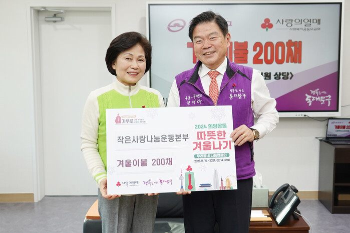 [시민일보 = 이대우 기자] 서울 동대문구(구청장 이필형)는 최근 작은사랑나눔운동본부에서 따뜻한 겨울을 위한 이불 200채를 기부했다고 밝혔다.