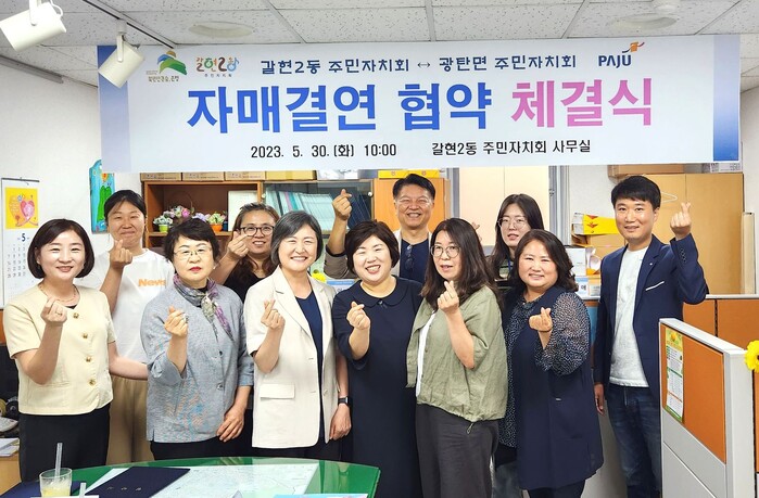 협약식에는 윤미경 갈현2동장과 박이순 갈현2동 주민자치회장, 이상미 광탄면 주민자치회장 등 양측 관계자 10여 명이 참석했다.