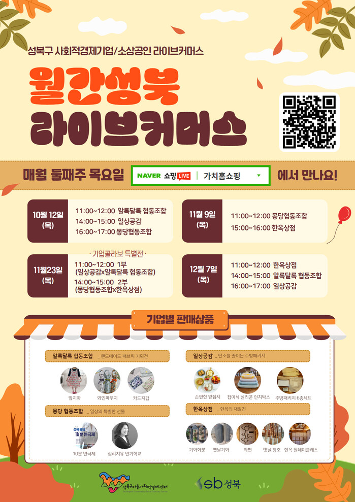 성북라이브커머스는 이달부터 오는 12월까지 매월 둘째 주 목요일에 월간으로 운영되며, 11월 넷째 주 목요일에는 기업 콜라보 특별전이 진행될 예정이다.