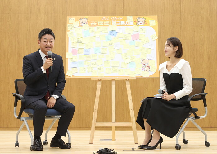 이날 행사에서는 직원들이 사전에 제출한 질문을 바탕으로 ‘공감톡톡 토크콘서트’가 진행됐다. 김 의장은 도의회 발전 방안, 정계 입문 계기, 직원 소통 및 복지 방안부터 MBTI에 이르기까지 다양한 질문에 성실히 답변하며 소통의 폭을 넓혔다.