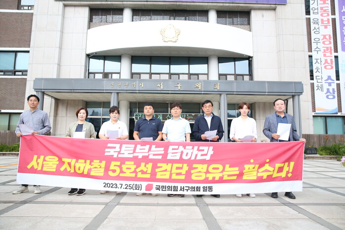 [인천=문찬식 기자] 인천 서구의회 국민의힘 소속 의원들이 서울5호선 검단 경유를 촉구하고 나섰다.