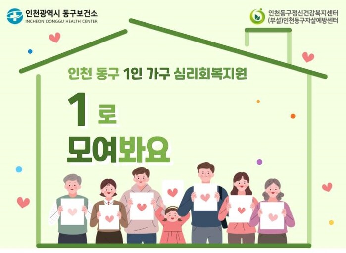 [인천=문찬식 기자] 인천 동구정신건강복지센터가 정신건강 및 자살 고위험 1인 가구를 대상으로 심리회복지원 서비스를 제공한다.