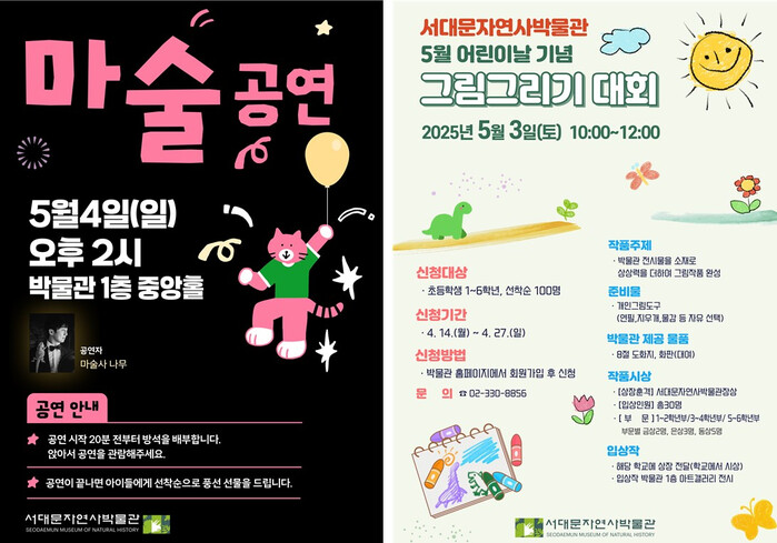 [시민일보 = 이대우 기자] 서울 서대문구(구청장 이성헌)가 어린이들에게 특별한 추억을 선사하기 위해 서대문자연사박물관에서 다양한 행사를 개최한다.