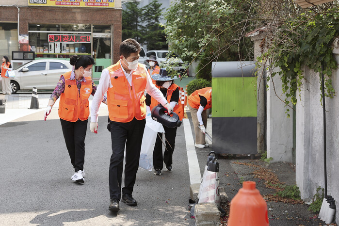 이날 김정헌 구청장과 주민자율방역단, 보건소 방역기동반은 주택가 골목, 하수구 등 동네 취약지역을 중심으로 구석구석 연무 방역을 진행했다.