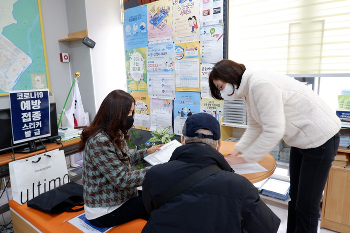 | ▲ 지난 2월 '복지 더 채움' 대상자가 도움을 받아 돌봄 서비스를 신청하는 모습. (사진제공=노원구청) |