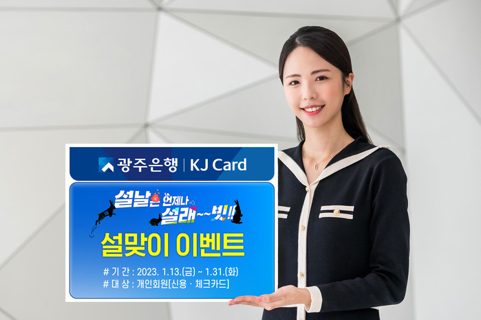 [시민일보 = 이대우 기자] 광주은행(은행장 고병일)은 KJ카드 개인고객을 대상으로 1월 13일부터 31일까지 ‘설날은 언제나 설래~~빗’ 이벤트를 실시한다고 밝혔다.