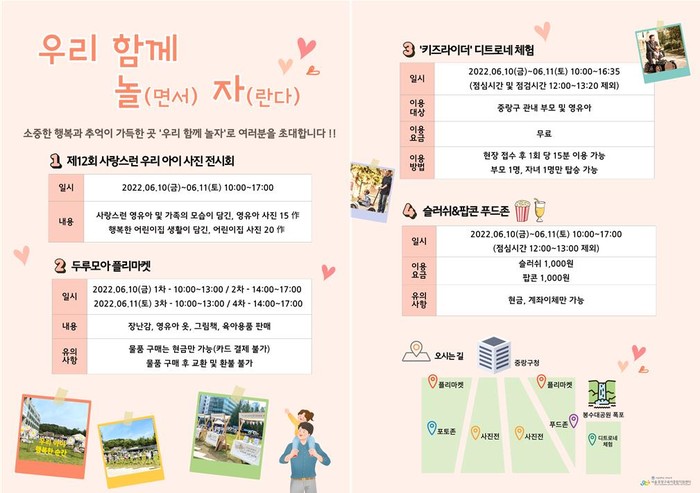 [시민일보 = 여영준 기자] 서울 중랑구(구청장 류경기)가 10~11일 양일간 ‘제12회 사랑스런 우리 아이 사진 전시회’와 ‘두루모아 플리마켓’을 개최한다.