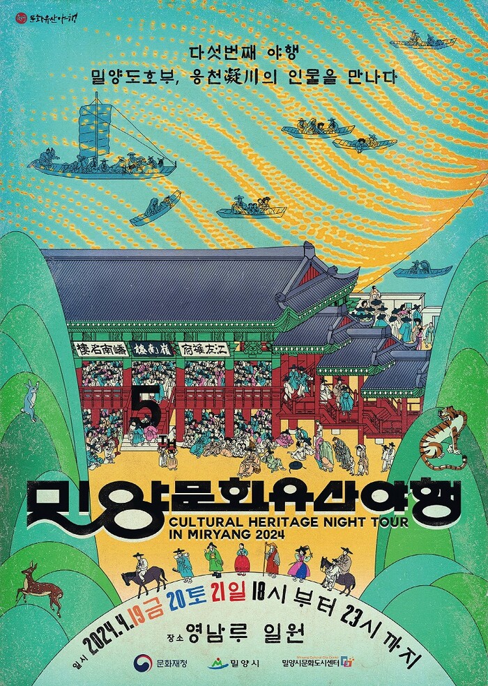 밀양문화유산야행은 국보 영남루를 중심으로 밀양관아, 밀양아리랑, 백중놀이 등 밀양의 유·무형 문화유산의 가치를 발견하고 공유하기 위한 문화유산 활용 사업으로 지난 2020년부터 5년 연속으로 문화재청 공모 사업에 선정됐다.