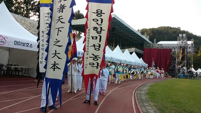 퍼레이드의 도착을 기다리는 용인시청에서는 용인시 향토무형문화재 할미성농악보존회의 할미성 농악이 시연된다. 장구잽이의 신명나는 가락과 춤사위를 보여주는 설장구, 어질어질 넘어질 듯 상모를 돌리며 공중에서 뛰며 도는 채상소고, 막대기 하나만으로도 물건을 빙빙 돌려대는 버나놀이, 그리고 열두 발이나 되는 종이 띠를 자유자재로 돌려대는 열두발상모가 흥을 북돋운다.