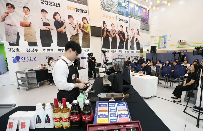 | ▲ 지난해 9월2일에 열린 청각장애인 바리스타 전국대회. (사진=강남구청 제공) |
