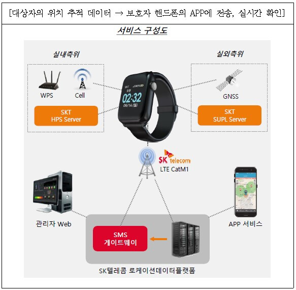 스마트 안심지킴이(GPS(위치결정 시스템) 위치추적기) 단말기는 ▲시계 줄에 부착하는 손목형을 기본 구성으로 ▲신발 깔창 뒤축에 삽입하는 인솔형 ▲목걸이 또는 가방의 고리에 부착할 수 있는 고리 키드형 중에 1종을 선택할 수 있도록 해 이용 대상자의 개별 선호도를 반영했다.