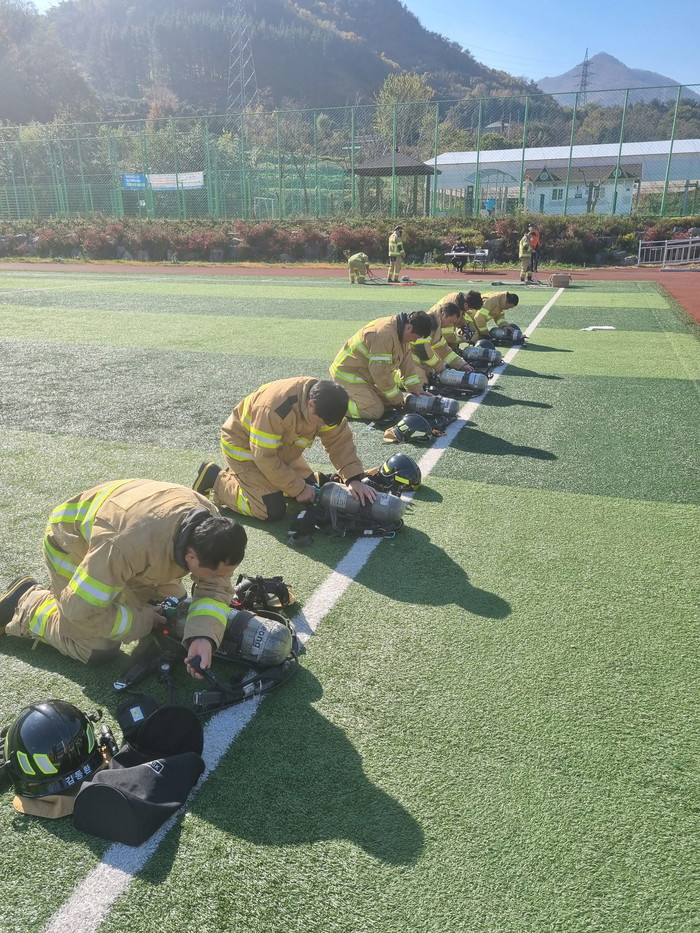평가 항목은 ▲공기호흡기 장착 ▲로프매듭법(기구묶기) ▲감염보호복 착·탈의 등이다.