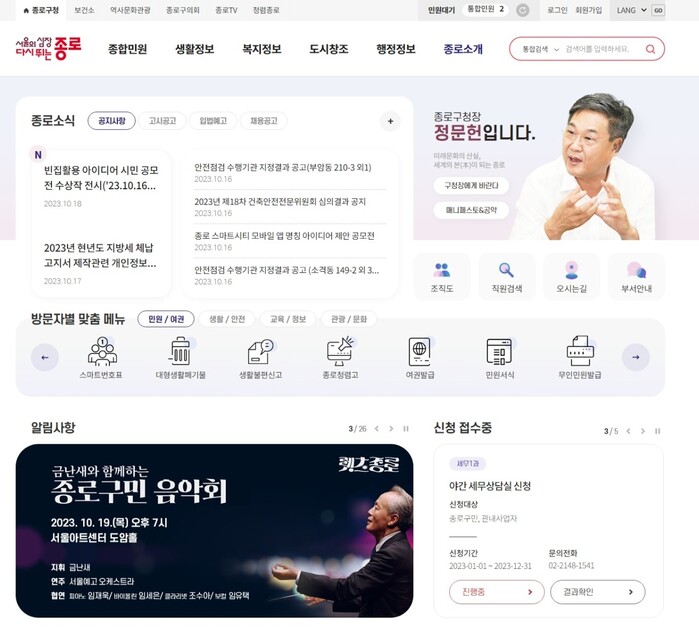 [시민일보 = 이대우 기자] 종로구(구청장 정문헌)가 구청 홈페이지를 정보접근성 향상에 중점을 두고 전면 개편했다.