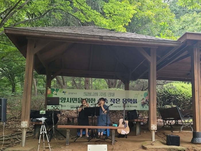 [고양=이기홍 기자] 고양시 화정1동 주민자치회가 지난 23일 오후 3시 성라공원 숲속 도서관에서 작은 음악회를 개최했다.