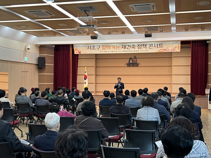 [시민일보 = 박소진 기자] 서초구(구청장 전성수)는 오는 17일 구청 2층 대강당에서 ‘2025년 찾아가는 재건축 정책 콘서트’를 개최한다고 밝혔다.