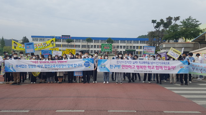 합천교육지원청(교육장 정종화)은 5월 12일(목) 합천군청(부군수 이선기), 합천경찰서(서장 박정덕) 및 지역 유관기관과 함께 학교폭력예방 및 청렴실천 합동 캠페인을 합천중학교 정문에서 실시하였다.