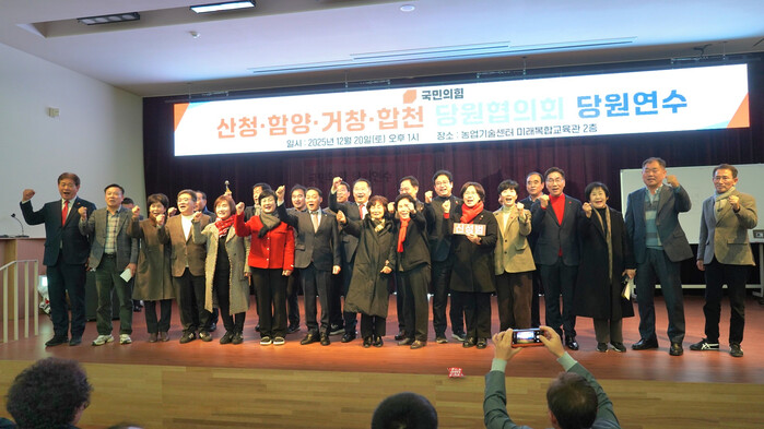 [합천=이영수 기자] 국민의힘 산청, 함양, 거창 합천 당원협의회가 20일 거창 농업기술센터 다목적복합교육관에서 당원 연수를 열고 지방선거를 앞두고 결집력을 다졌다.