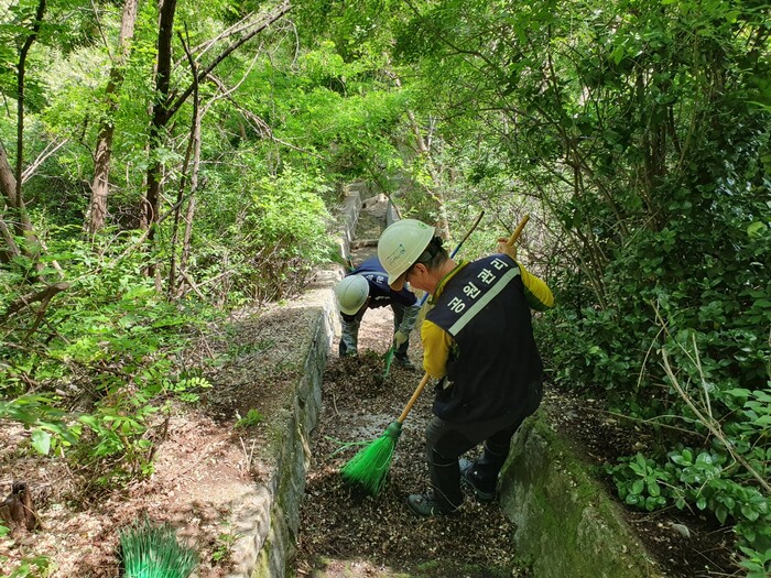 현장 점검과 병행하여 산사태현장예방단이 배수로 내 적치물 제거, 그레이팅 정비, 고사목 제거 등 기본적인 정비를 완료하였으며, 지난 4월 21일에는 매봉산에 산사태 예방사업을 준공하며 모든 산사태 취약지역에 사방사업을 완료하여 대비를 든든히 마쳤다.